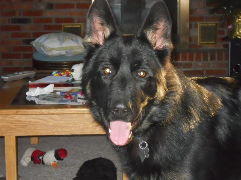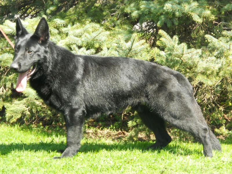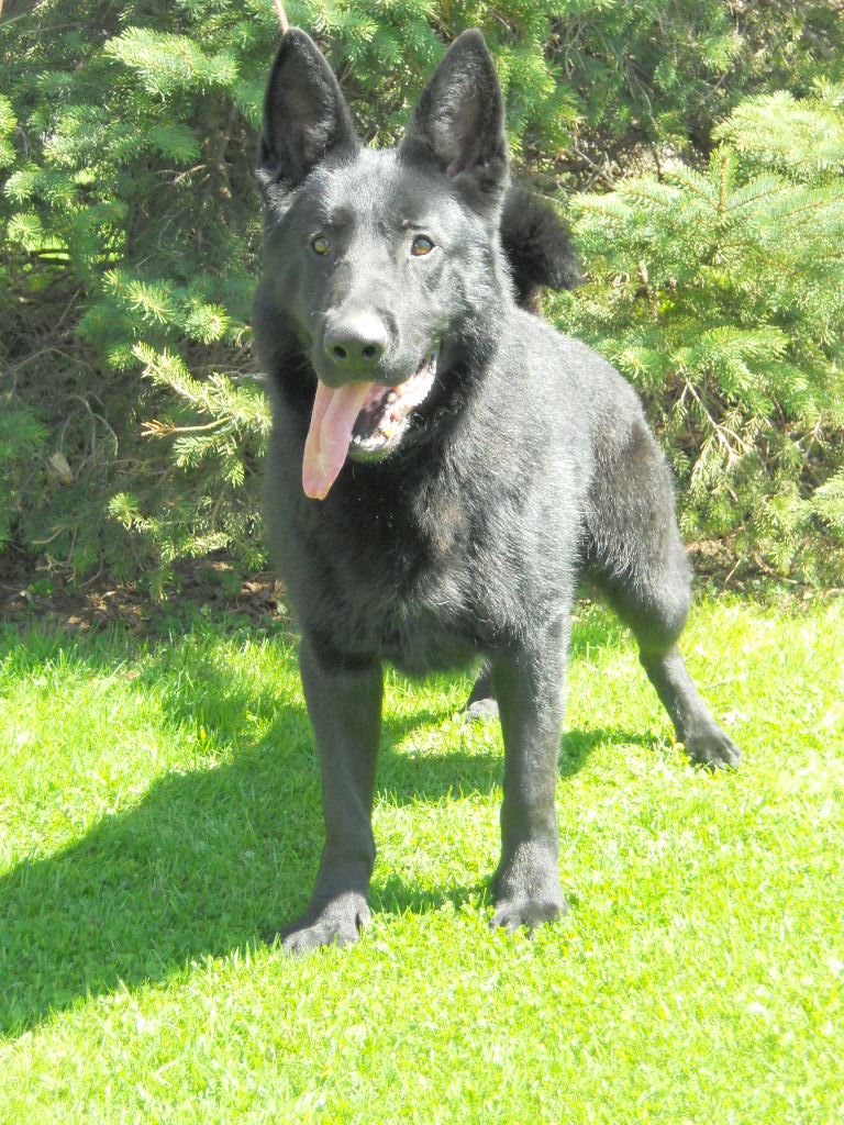 We thank Rob and Michelle for allowing us to have this outstanding young boy. He has fantastic movement. He has a long reaching, flowing gait. His breeders started his show career as a pup and he placed very high or VP1 in all his classes. He traveled all over North America for shows. He has proven to have a wonderful outgoing temperament. He was raised with other dogs and young children. This is very important to us in a breeding dog!
