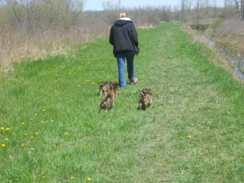 Pictures and video below are at 6 weeks when I took the pups to training with me... We took them for a walk down the trail too.