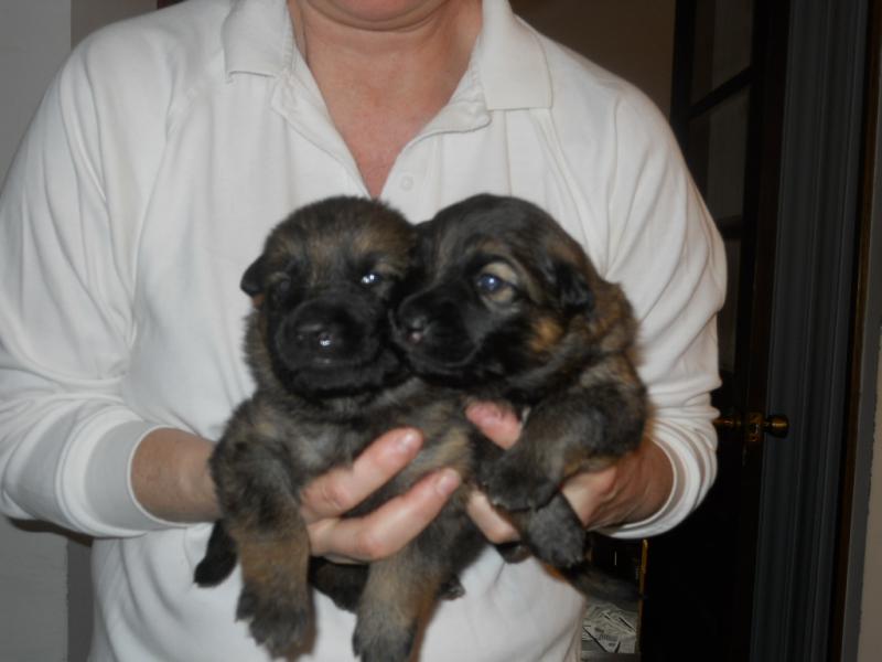 Here they are just hours old. Looks like we will have light and dark red sable variation in this litter. Can't find red sables, they are rare.