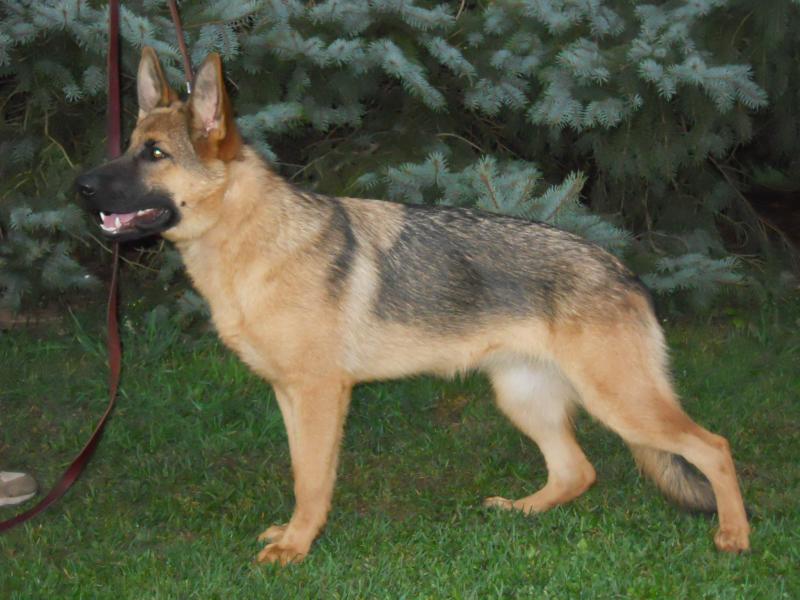 She is an import from Germany and we aquired her at 1 year of age. We look forward to watching her mature in the next year. She is gorgeous black and red girl with beautiful eyes.